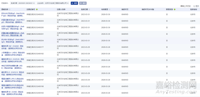 2023年3月,北京貝爾生物工程股份有限公司在北京市藥監(jiān)局完成了49項醫(yī)療器械,注冊產(chǎn)品數(shù)量排名第一,均為Ⅱ類IVD診斷試劑產(chǎn)品。