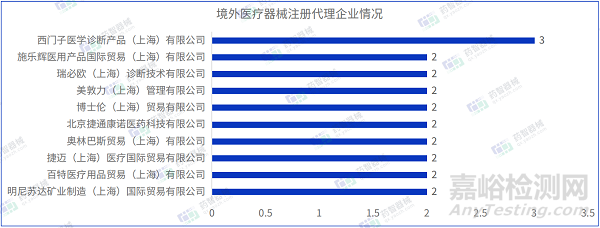 從進口醫(yī)療器械代理人企業(yè)情況看,2023年3月進口醫(yī)療器械注冊代理人企業(yè)達54家。排行前十的企業(yè)中,排名前三的分別是:西門子醫(yī)學診斷產(chǎn)品(上海)有限公司、施樂輝醫(yī)用產(chǎn)品國際貿(mào)易(上海)有限公司、瑞必歐(上海)診斷技術有限公司,其中西門子醫(yī)學診斷產(chǎn)品(上海)有限公司的注冊數(shù)量排名第一,排行前十的企業(yè)情況如下圖所示。