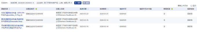 西門子醫(yī)學診斷產(chǎn)品(上海)有限公司代理三項進口醫(yī)療器械,均為Ⅱ類體外診斷試劑產(chǎn)品。