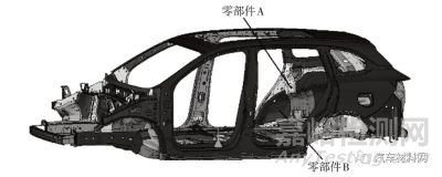 白車身設(shè)計(jì)師根據(jù)設(shè)計(jì)經(jīng)驗(yàn)認(rèn)為,零部件A和零部件B(圖10、圖11)是影響白車身彎曲剛度的薄弱部件,結(jié)合白車身的生產(chǎn)工藝要求,白車身設(shè)計(jì)師將零部件A由壁厚0.7 mm增加至1.0 mm,將零部件B由壁厚0.7 mm增加至1.0 mm,作為優(yōu)化后的白車身結(jié)構(gòu)數(shù)據(jù)。