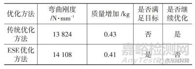 (1)若白車身彎曲剛度計(jì)算值大于目標(biāo)值,則說明白車身彎曲剛度性能達(dá)標(biāo),不需要進(jìn)行優(yōu)化;