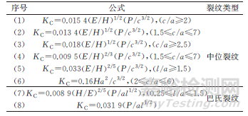 表1 壓痕法計算斷裂韌性的公式
