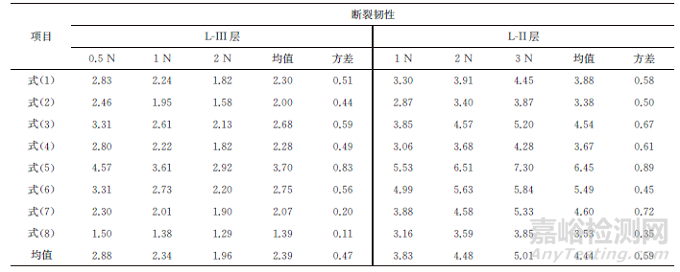 表2 表面強化層不同層內(nèi)斷裂韌性的經(jīng)驗計算值