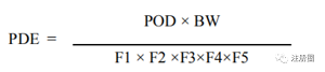 PDE=(NOAELx Weight Adjustment)/(F1x F2x F3x F4x F5x)