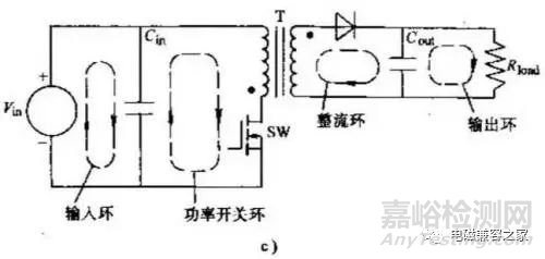 圖1 a、b、c畫出了三種主要開關(guān)電源拓撲的環(huán)路。