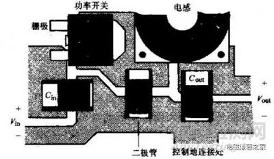 在電源PCB制作中,這些交流電流環(huán)路的布線要在其他引線之前布好。每個環(huán)路由三個主要器件組成:濾波電容、功率開關(guān)管或整流器、電感或變壓器。它們的放置要盡可能靠近。這些器件的方向也要確定好,以使它們之間的電流通路盡可能短。圖2就是關(guān)于Buck(或降壓)變換器功率部分布局的一個很好的例子。