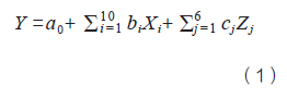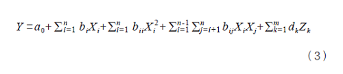 式中,X為實(shí)驗(yàn)中考察的過(guò)程參數(shù),Z為藥材屬性參數(shù),a0為擬合所得常數(shù)項(xiàng),bi和cj均為擬合所得偏回歸系數(shù)。