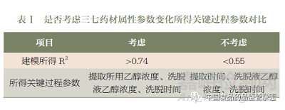 對(duì)比結(jié)果見(jiàn)表1。從中可知:考慮三七屬性參數(shù)變化篩選所得關(guān)鍵過(guò)程參數(shù)與不考慮時(shí)不同。考慮三七屬性參數(shù)所得模型的決定系數(shù)數(shù)值更高,說(shuō)明部分三七屬性參數(shù)確實(shí)對(duì)過(guò)程評(píng)價(jià)指標(biāo)有影響。因?yàn)楣I(yè)生產(chǎn)中三七藥材批次間質(zhì)量差異總是存在,考慮三七屬性參數(shù)變化所得關(guān)鍵過(guò)程參數(shù)應(yīng)該更為可靠。