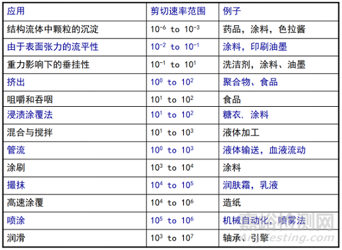 半固體制劑一般屬于剪切變稀的非牛頓流體。利用流變儀可以得到樣品剪切速率由低到高的流動曲線,來模擬半固體制劑從靜置,到管內(nèi)擠出,再到涂抹使用的情況。低剪切(≤0.01s-1)用于評估分散體系沉降行為;中剪切(1~100s-1)用于評估品在運輸、搖晃、攪拌過程中的穩(wěn)定性;高剪切(>1000s-1)用于評估快速涂抹過程中的易用性。最理想的狀況是靜置階段半固體制劑黏度大,泵送過程中黏度適中,涂抹過程中黏度變小。不同處方工藝制備的半固體制劑,由于藥物的分散狀態(tài),液滴粒徑大小,基質(zhì)組成不同,黏度存在差異。黏度不同將影響藥物在基質(zhì)中的擴散行為,最終造成產(chǎn)品的皮膚藥動學(xué)行為存在差異。