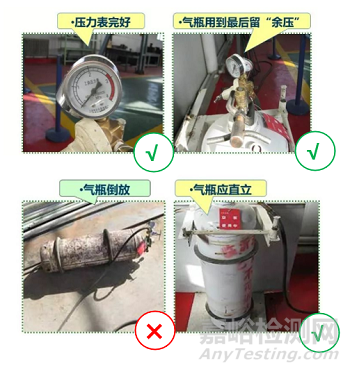 嚴(yán)禁使用沒有相關(guān)合格信息的氣體鋼瓶;氣體鋼瓶若有缺陷、安全附件不全、已損壞,不能保證安全使用時(shí),須立即停止使用。
