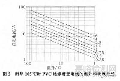 1)降低導線溫升。對于整車電源線,將線心截面增大一個等級。當導線截面積增大時,導線電阻變小,電流密度下降,根據(jù)焦耳定律單位長度導體運行時產(chǎn)生熱量降低,即可增加導線耐熱劣化壽命。