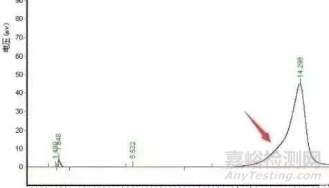 4、包峰:由于分析方法不適宜導(dǎo)致在主峰前有很多小峰出現(xiàn),假象前沿峰(非其他因素引起的前沿),大峰包埋了沒有分開的小峰。