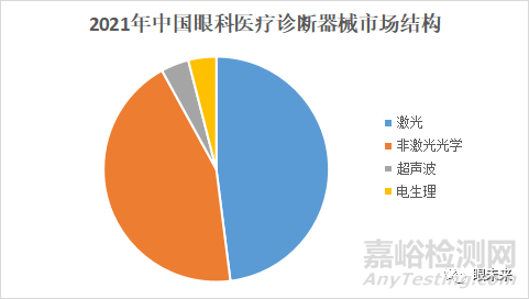 眼科診斷醫(yī)療器械按能量來源可以分為激光診斷設備、非激光光學診斷設備、超聲波設備和電生理設備。光學診斷器械具有檢查直觀、清楚的優(yōu)點,目前仍是眼科醫(yī)療診斷的主流產(chǎn)品。2021年,我國眼科激光診斷器械市場規(guī)模約為12億元,占整個眼科醫(yī)療診斷器械市場的48%,非激光光學診斷器械市場規(guī)模約為11億元,占整個眼科醫(yī)療診斷器械市場的44%。