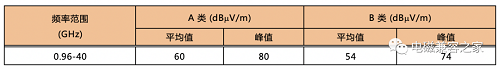 表 4:按照 47 CFR 15.109(g)/CISPR 22/32 標(biāo)準(zhǔn)規(guī)定的 1GHz 到 6GHz 范圍的輻射發(fā)射場(chǎng)強(qiáng)限值