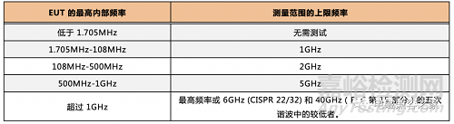 表5:輻射發(fā)射最大測(cè)量頻率(基于 EUT 內(nèi)部時(shí)鐘源的最高頻率)