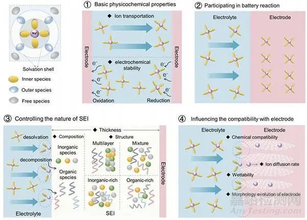 圖3 電解液、SEI、電極與電池性能的關(guān)系© The Royal Society of Chemistry 2022