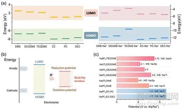 (c)Na+與PC、DMC和TEGDME溶劑結(jié)合能;