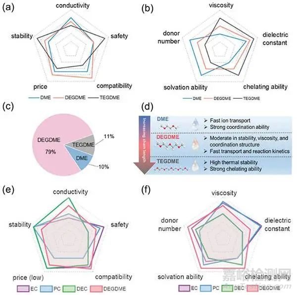 (b)不同類型電解液在導(dǎo)電性、安全性、相容性、成本和氧化穩(wěn)定性等關(guān)鍵特性的多角度比較;