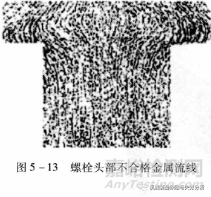 成形工藝不當,造成緊固件頭部金屬流線不合格,下圖給出了螺栓頭部金屬流線沒有沿螺栓頭部外形分布特征。