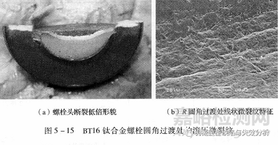 滾壓導致的根部微裂紋一般出現(xiàn)在螺栓頭與螺桿R圓角過渡處,該處由于R尺寸的影響,對于滾壓工藝控制和表面質(zhì)量控制帶來了一定的困難。某BT16鈦合金蝶栓在進行裝配過程中出現(xiàn)低應力斷裂。分析發(fā)現(xiàn),在故障螺栓頭和螺桿R圓角過渡處,經(jīng)過滾壓的表面完整性較差,存在大量的周向線狀微裂紋,見下圖。