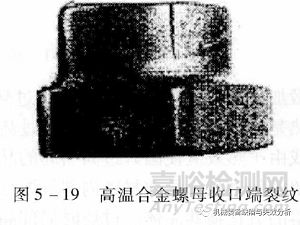 自鎖螺母收口處出現(xiàn)裂紋的現(xiàn)象較為常見,除收口所致應力較大外,很多情況下上材料的塑性不良有關,這是由于收口裂紋實質(zhì)上是收口的塑性變形量超過了材料所自受的變形能力。如某型高溫合金自鎖螺母收口處多次出現(xiàn)裂紋,其原因是收口在時效強化后進行,此時由于時效強化導致材料強度高而塑性低產(chǎn)生開裂。后改為先收口后進行時效強化,這一裂紋現(xiàn)象得以解決。