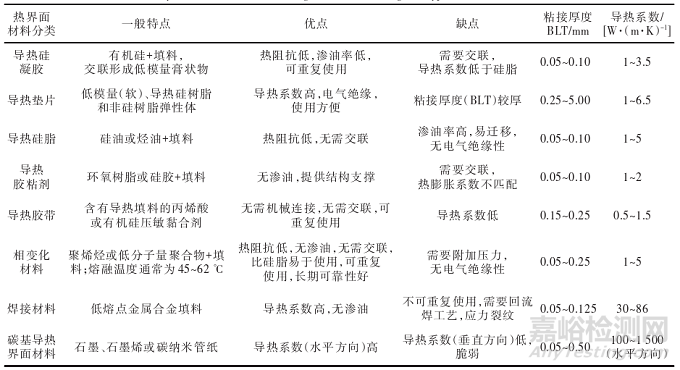 表1. 典型熱界面材料的特點和優(yōu)缺點。