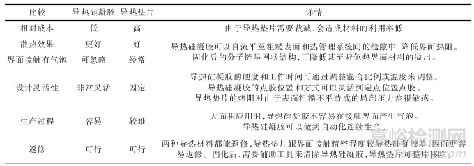 表2. 導熱硅凝膠與導熱墊片的比較。