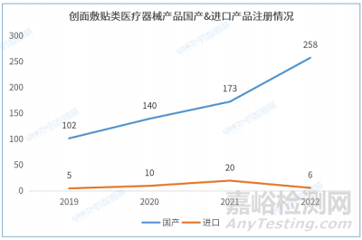 2.2 創(chuàng)面敷貼類醫(yī)療器械產(chǎn)品國產(chǎn)&進口產(chǎn)品注冊情況