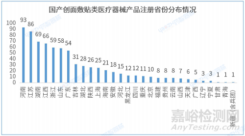 2.3 國產(chǎn)創(chuàng)面敷貼類醫(yī)療器械產(chǎn)品注冊省份分布情況