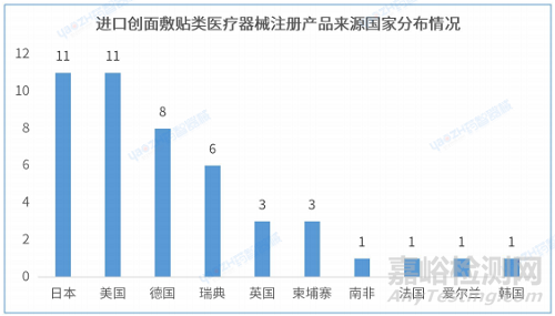 2.5 進口創(chuàng)面敷貼類醫(yī)療器械注冊產(chǎn)品來源國家分布情況