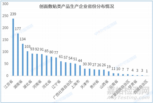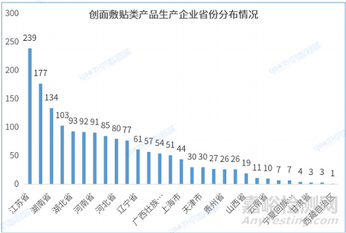 3.2 創(chuàng)面敷貼類產(chǎn)品生產(chǎn)企業(yè)省份分布情況
