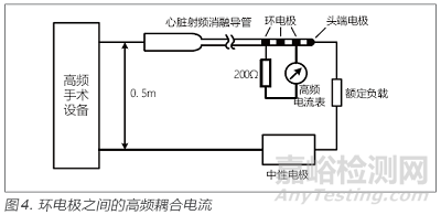 4.6.5.2 預期不傳輸高頻電流的電極之間跨接200Ω 無感電阻不應產生50mA以上的高頻電流。