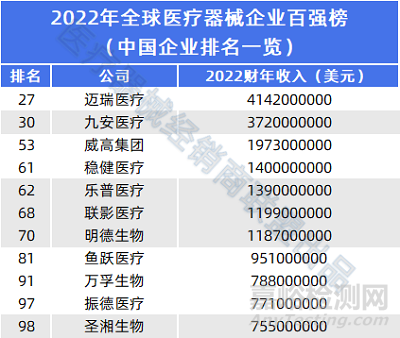 11家中國醫(yī)療器械企業(yè)上榜