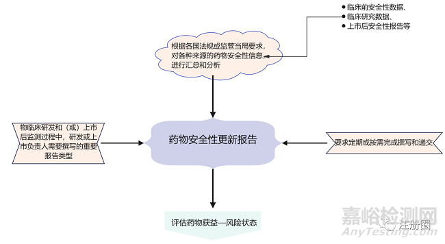 藥物安全性更新報(bào)告是指根據(jù)各國法規(guī)或監(jiān)管當(dāng)局要求,對各種來源的藥物安全性信息,包括臨床前安全性數(shù)據(jù)、臨床研究數(shù)據(jù)、上市后安全性報(bào)告等,進(jìn)行匯總和分析,評估藥物獲益—風(fēng)險(xiǎn)狀態(tài),并按要求定期或按需完成撰寫和遞交的報(bào)告。
