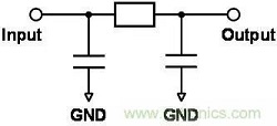 為了能有效解決電子產(chǎn)品電磁干擾的問題,并能兼顧靜電放電防護(hù)的功用,可以采用具有靜電放電防護(hù)功能的電磁干擾濾波器。圖一所示,即為常見的π型低通濾波器。在Input及Output端點(diǎn)之間的組件,可以是電阻或是電感組件。是要采用電阻還是電感,應(yīng)視產(chǎn)品的實(shí)際應(yīng)用所需而定。