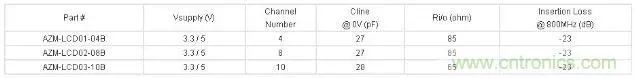 表一所列,為晶焱科技已推出的應(yīng)用于液晶顯示器的電磁干擾濾波器系列產(chǎn)品。其適用于5V以下的額定電壓電路系統(tǒng),線電容值約為27微微法拉。操作頻率在800百萬赫茲時(shí),其功率損耗可達(dá) -23dB,可以顯著地降低電磁干擾訊號(hào),以維持受保護(hù)電路的操作功能正常。晶焱科技同時(shí)推出三種不同通道數(shù)的電磁干擾濾波器產(chǎn)品,以方便其客戶依照不同需求選用合適的產(chǎn)品。