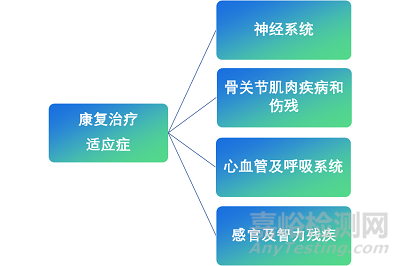 康復(fù)醫(yī)療主要針對包含神經(jīng)系統(tǒng)疾病和傷殘、心血管及呼吸系統(tǒng)疾病、骨關(guān)節(jié)肌肉疾病和傷殘、感官及智力殘疾在內(nèi)的適應(yīng)癥,基于此類適應(yīng)癥,覆蓋養(yǎng)老、殘障、加速外科以及產(chǎn)后康復(fù)市場。