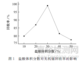 表1 不同體積分數(shù)鹽酸所得無機錫回收率結果(n=6)