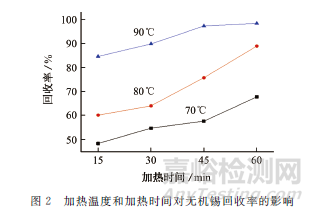 以加標玉米油樣品為檢測對象,考察了不同的加熱溫度和加熱時間對無機錫回收率的影響。