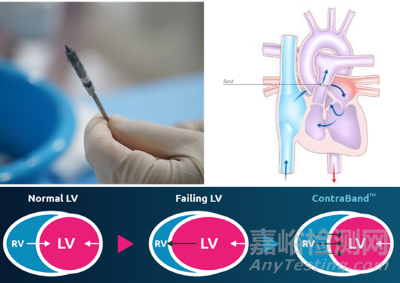 Restore Medical開發(fā)了一款經導管植入物實現肺動脈結扎(PAB)治療心衰技術-ContraBand。用于治療左心室(LV)衰竭患者。肺動脈結扎術(PAB)是一種通過在主肺動脈(MPA)周圍系上外科束帶來降低肺動脈血流量和壓力的方法,這樣減小右心室的壓力,恢復右心室的形狀。ContraBand 設計用于通過在左肺動脈和右肺動脈中部署植入物來治療左心室(LV)衰竭, 通過保留的右心室(RV)能夠幫助衰竭的左心室,改善左心室射血分數,減少了二尖瓣反流并恢復了有利的心室?guī)缀涡螤?。但植入物具體如何實現PAB方式未有透露。