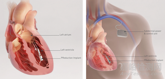 Pumpinheart是一種通過ECG控制的微型植入式舒張心臟泵,通過股靜脈通路房間隔植入到左心室,通過心臟泵前端的三個固定架固定在左心室。通過在心臟放松和心室重新充滿血液時降低心房壓力來支持HFpEF患者的心臟功能??梢栽谑鎻埰诮档妥笮姆繅毫?,并與運動期間升高的壓力相呼應。