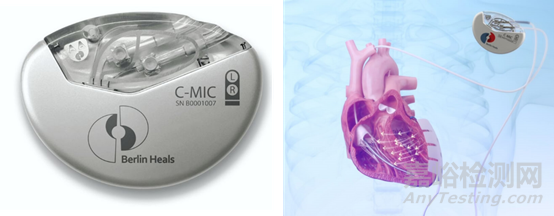 在此技術背景下,Berlin Heals開發(fā)了一種新型植入物,被稱為C-MIC(心臟微電流)單元,外形類似起搏器,通過兩個小切口在全身麻醉下進行腹腔鏡植入。它包括兩個電極,通過兩根導線向心臟輸送相當于生理強度的恒定直流電流,一根導線位于左心室心外膜,另一根導線位于右心室腔。