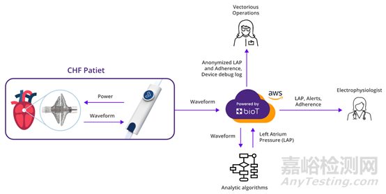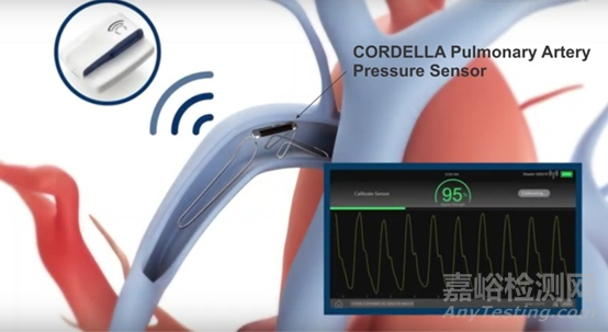 Cordella傳感器是一個大小只有回形針相當的小型傳感器,其通過其專有的輸送系統注入到肺動脈。該裝置就可以檢測到肺動脈壓力值的上升,這是肺部積液和充血性心衰即將發(fā)作的早期預警,甚至比出現呼吸急促或體重增加癥狀還要早。肺動脈壓力信息被記錄下來,從患者家中無線傳輸到云端,這樣醫(yī)生就可以通過云端實時查看數據,并主動調整治療方案,使患者心衰病情得到控制,從而延長患者生命以及改善生活質量 。