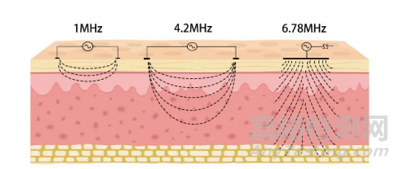 ? 頻率與作用深度示意圖(不同頻率的射頻美容儀產(chǎn)品)