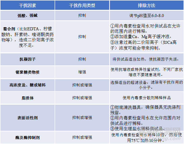 一項對人用藥品與鱟試驗相容性的研究證實了干擾的影響范圍,在所研究的品種中僅30%的樣品可以不經(jīng)任何處理直接進行內(nèi)毒素檢測,有70%的樣品都是存在干擾的。細菌內(nèi)毒素試驗中如出現(xiàn)干擾現(xiàn)象,可通過適當?shù)奶幹脕砣コ蓴_。