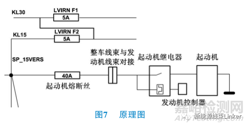 此處起動機(jī)的電源來自于KL15,而控制起動機(jī)工作的為發(fā)動機(jī)控制器,根據(jù)此處設(shè)計(jì)狀態(tài)可以確認(rèn),在碰撞完畢,KL15斷開的情況下,此回路不應(yīng)存在有電流的可能