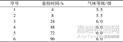 表2 通風(fēng)懸掛時(shí)間對氣味性的影響