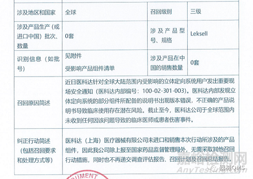 近日,國家藥監(jiān)局網(wǎng)站發(fā)布了八家醫(yī)療器械企業(yè)召回通告,其中涉及中國市場的只有三家企業(yè),對于該三家企業(yè)的召回產(chǎn)品及批次均未在國內(nèi)進口和銷售,其他企業(yè)召回均不涉及中國地區(qū)。詳細信息見文章附件。