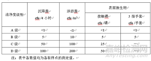 (2)各潔凈級別環(huán)境微生物監(jiān)測的可接受標準為: