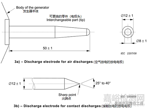 另外,接觸放電和空氣放電使用的放電電極頭有所不同,尺寸規(guī)定如圖3。